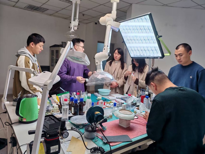 文博爱好者体验纸质文物修复 王雪峰 摄